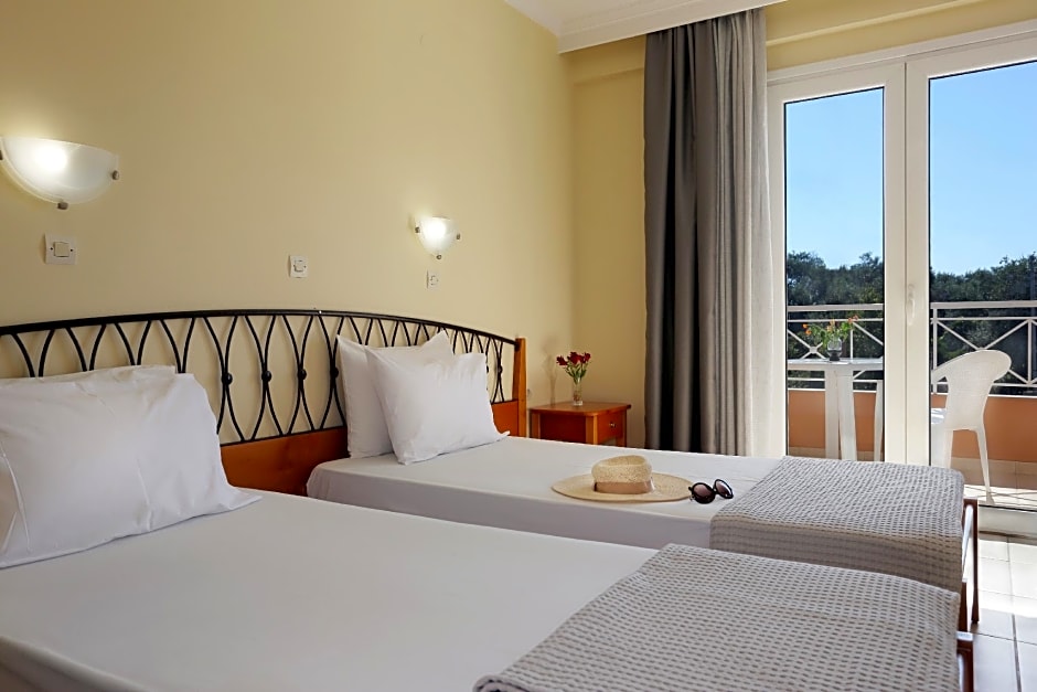 Triple Superior Pool View is 323 square feet and includes either 3 single beds 80-130 width or a double bed 131-150 width plus balcony, satellite tv , hairdryer, and tea and coffee making facilities .
